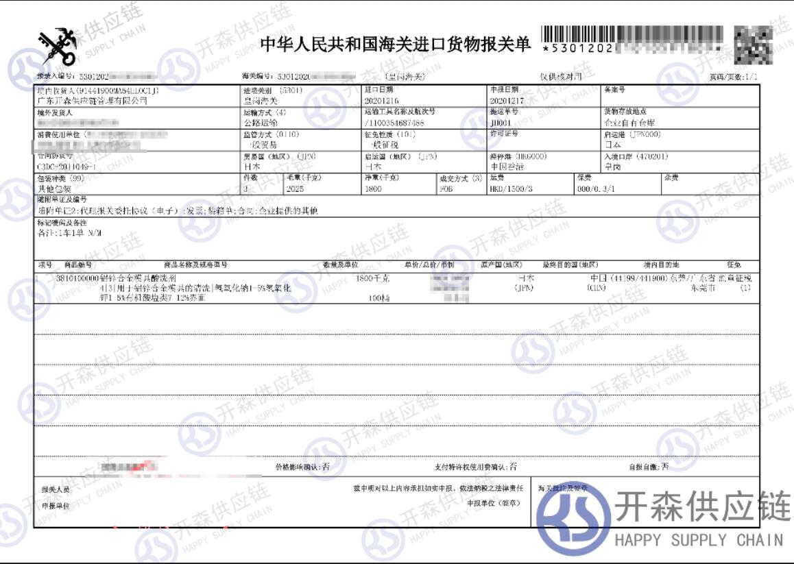 【導(dǎo)讀】您正在閱讀的是關(guān)于深圳港日本清潔劑進(jìn)口報(bào)關(guān)清關(guān)代理服務(wù)【經(jīng)典案例】的內(nèi)容,本文由開森化工品進(jìn)口報(bào)關(guān)代理小編整理編寫;