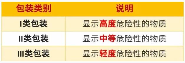 按照危險程度,對第1類、第2類、第7類、第5類的5、2項、第6類的6、2項以及第4類的4、1項自反應物質(zhì)以外的其他各類危險貨物,可劃分為I類、II類、III類三個包裝類別: