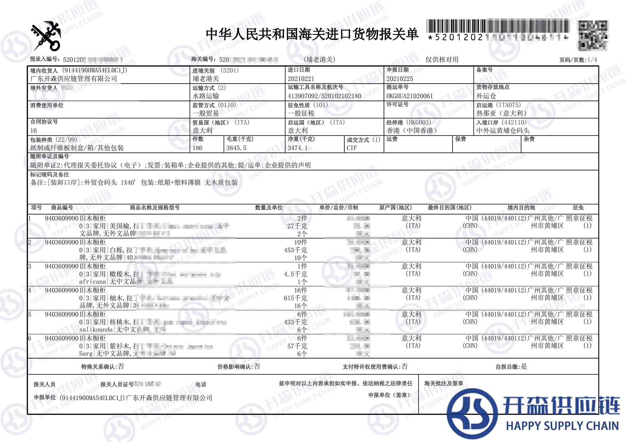 一、意大利二手舊木櫥柜家具進(jìn)口報(bào)關(guān)代理案例詳情
