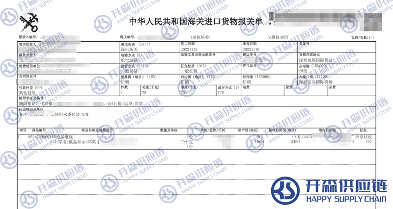 一、LED液晶電視進(jìn)口報關(guān)代理案例詳情