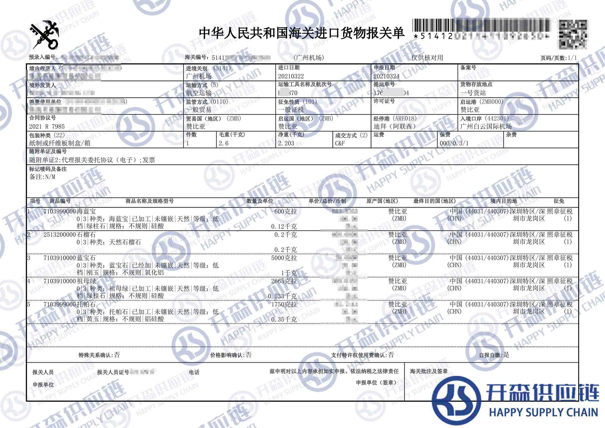 一、贊比亞寶石進(jìn)口報(bào)關(guān)代理案例詳情