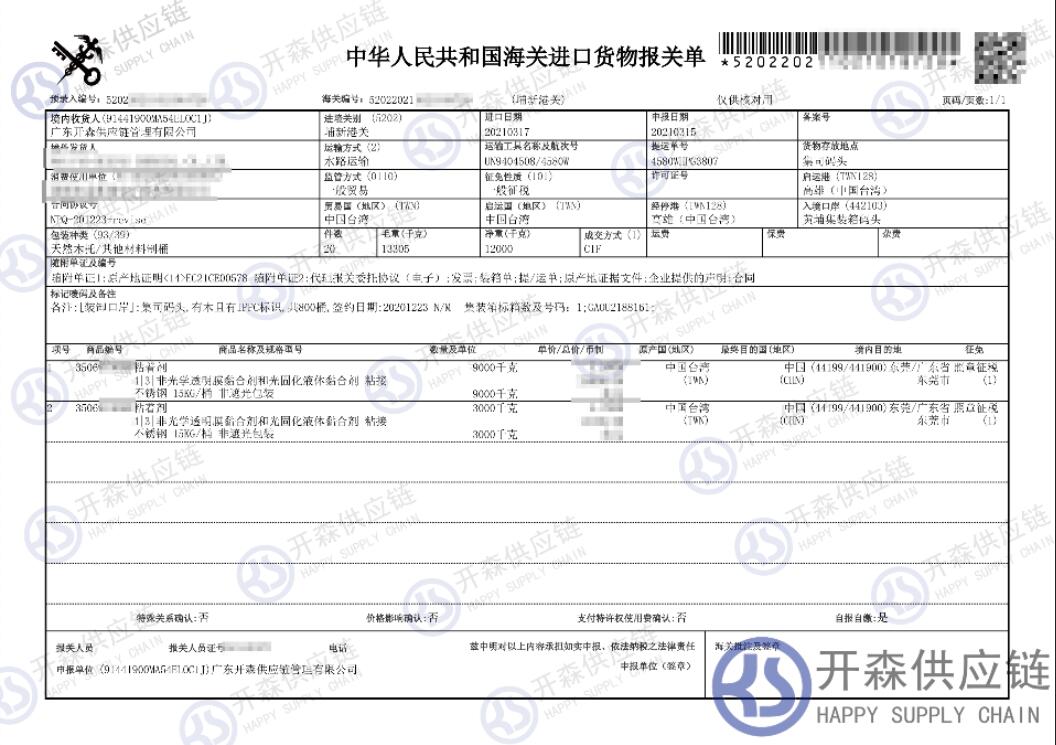 臺灣粘合劑進(jìn)口報關(guān)清關(guān)代理服務(wù)【經(jīng)典案例】