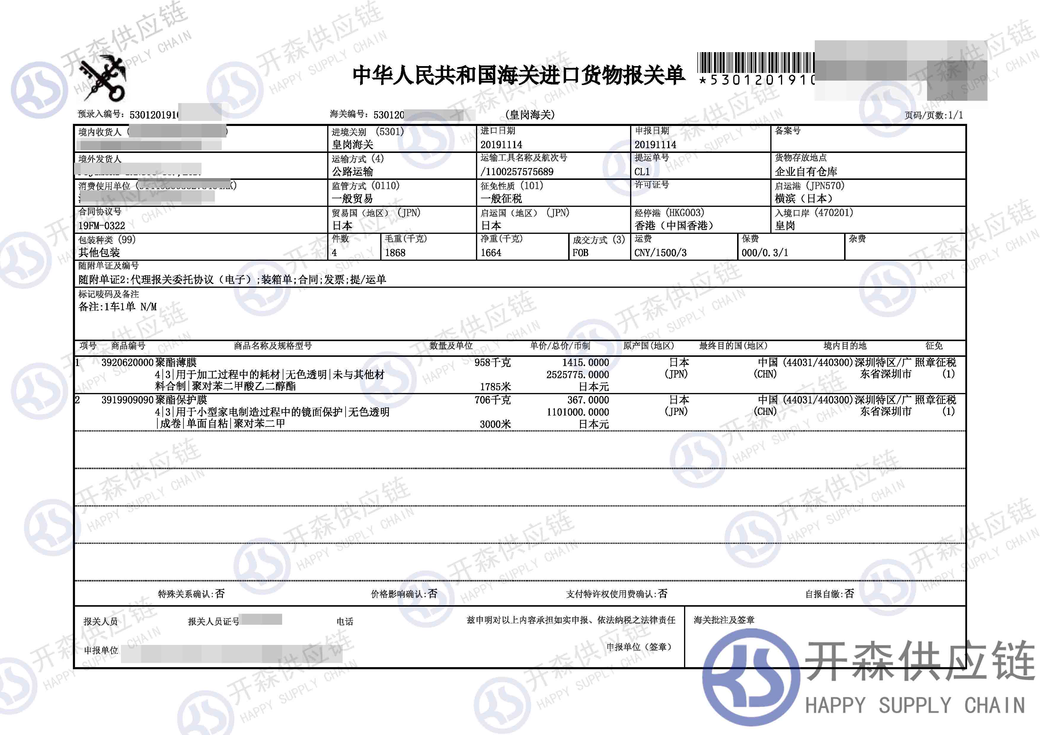 【進口案例】聚酯薄膜進口報關(guān)代理服務(wù)