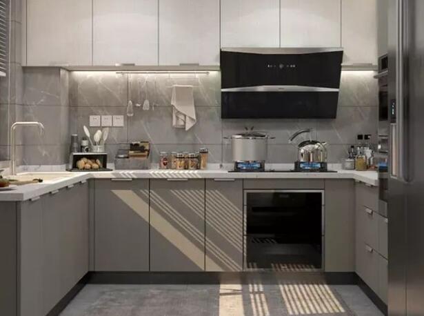 櫥柜,是指廚房中存放廚具以及做飯操作的平臺(tái)。使用明度較高的色彩搭配,由五大件組成,柜體,門板,五金件,臺(tái)面,電器。整體櫥柜,亦稱“整體廚房”,是指由櫥柜、電器、燃?xì)饩?、廚房功能用具四位一體組成的櫥柜組合。