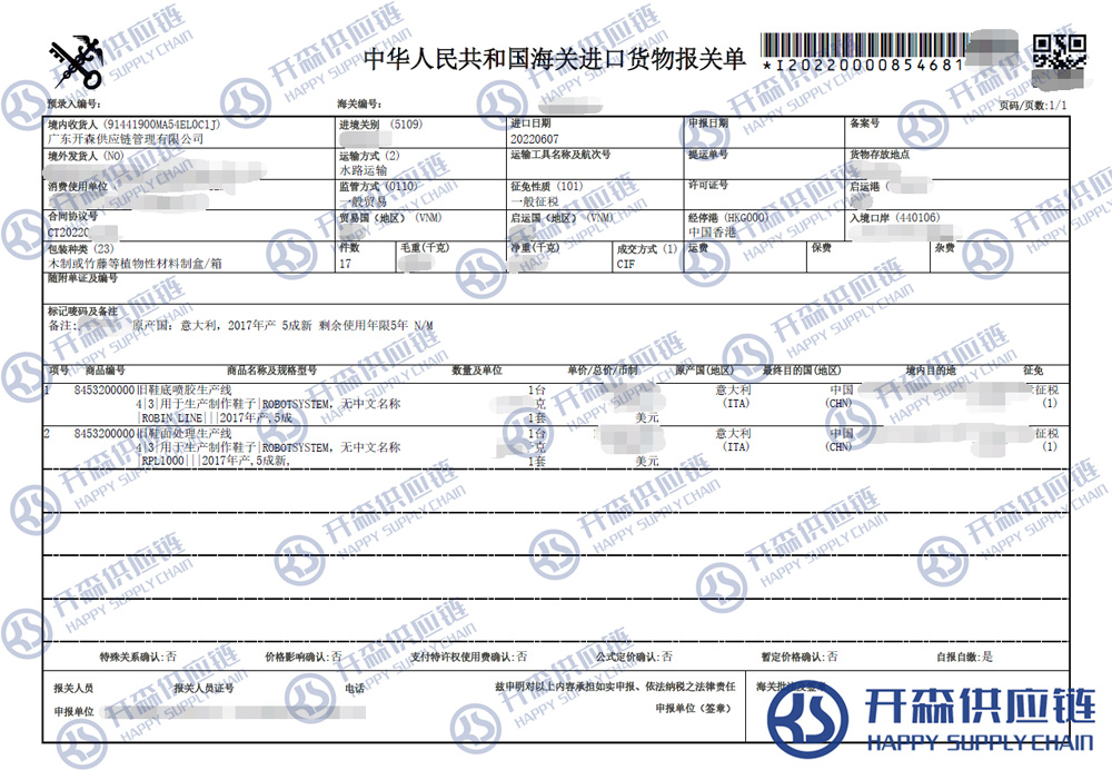 一、二手制鞋生產(chǎn)線設(shè)備進(jìn)口報關(guān)代理案例詳情