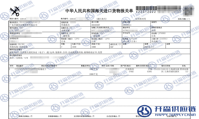 一、日本玫瑰花干進口報關(guān)代理案例詳情