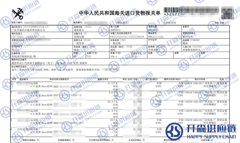 一、越南運動鞋進口報關(guān)代理案例詳情