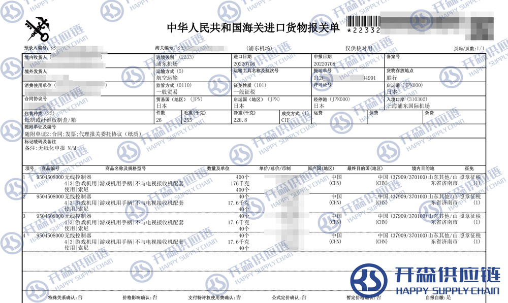 【導讀】您正在閱讀的是關于日本游戲手柄進口清關報關代理服務【經典案例】的內容,本文由開森游戲機進口報關代理小編整理編寫;