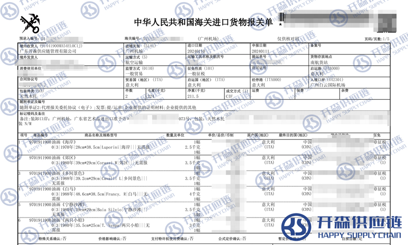 一、廣州機(jī)場意大利油畫進(jìn)口報(bào)關(guān)代理案例詳情